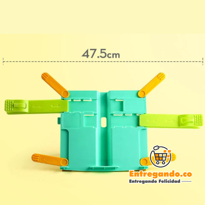 📕Ganchos ajustables para sujetar libros y dispositivos.